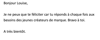 Ici, pas question d'une newsletter sans saveur à base de promo et de repartage inutile, mais plutôt d'une newsletter exclusive avec 100% de conseils concrets (définir un budget de lancement, t'organiser pour créer ta marque, trouver des financements, vérifier que tu sois rentable...).